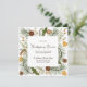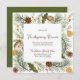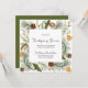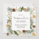 Rustic Thanksgiving Diner invitation, avec un arrangement simple de forêt d'automne avec fleurs sauvages, champignon terreux, feuilles de pins, pinecone, et feuilles d'automne. Détails de l'invitation Thanksgiving personnalisable.
