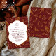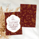 Invitation vos invités à votre dîner de fête de Thanksgiving avec ce rustique élégant bordeaux & chaud orange doré entouré de feuilles d'automne et motif citrouille.