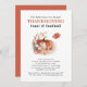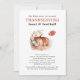 Fête personnalisée et football Thanksgiving Diner Invitation... Thanksgiving est un jour de gratitude, pour la fête généreuse de la dinde et de la tarte citrouille - et pour les trois matchs de football que vous pouvez regarder à votre guise avec vos amis et votre famille... toute la journée, si vous le souhaitez. Notre invitation à dîner Thanksgiving à thème citrouille de football fleuri fait savoir à vos invités qu'ils peuvent se détendre, bruire, et applaudir dans une atmosphère amicale et confortable. L'exemple de titre de l'invitation se lit actuellement : "La 1ère Fête annuelle de l'Action de grâces de Robertson & Football" avec votre invitation et le libellé du RSVP ci-dessous. Tout le texte peut être facilement révisé sur le modèle de personnalisation.