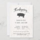 Cette invitation simple et élégante pour un grand dîner de Thanksgiving présente un arrière - plan blanc à l'aspect patiné en bois, une silhouette de cochon de style ferme et un script rustique branché. L'arrière de l'invitation a un aspect noir de tableau noir.