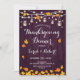 Rustique Thanksgiving Dinner Invitation avec motif en bois violet foncé et des lampes de fées à cordes. Comprend des jarres de mason et des feuilles d'automne. Parfait pour une fête de style rustique. S'il vous plaît, envoyez-moi un message si vous avez besoin d'une personnalisation plus poussée.