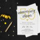 Invitation élégante de dîner d'anniversaire de mariage en noir et blanc avec des détails dorés.