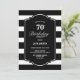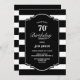 Dîner à 70e anniversaire rayé noir et blanc. Le texte est entièrement personnalisable pour vous permettre d'inclure toutes vos propres informations pour la célébration de votre anniversaire.