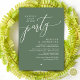 Marquez le début de votre pour toujours avec élégance en utilisant notre carte d'invitation de cérémonie d'élopement de mariage sur le thème de la verdure verte sauge rustique contemporaine et élégante, "Happily Ever After Party". Parfaite pour les couples qui prolongent leur occasion joyeuse, cette invitation dégage de la sophistication avec une pointe de ludicité, préparant le terrain pour un événement mémorable. Ornée d'un thème de design de script moderne intemporel, elle ajoute une touche de charme raffiné à vos festivités. Créée par TeeshaDerrick, cette invitation promet de capturer magnifiquement votre histoire d'amour.