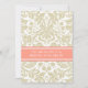 Invitations nuptiales au déjeuner dans l'élégant sable taupe clair brun, rose pêche orange et blanc classique vintage motif damas floral, chic et féminin, personnalisable avec vos détails de douche. Également disponible en cartes de remerciement et invitations pour la fête de mariage.
