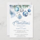 Diner de Noël classique argent bleu baubles et flocons de neige sapins neige aquarelle modèle invitation instantanée