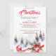 Dîner de Noël classique baubles rouges et rubans rouges sapins enneigés aquarelle modèle invitation instantanée télécharger