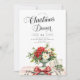 Cette élégante invitation à dîner de Noël dispose d'un cadre de table magnifiquement conçu, complété par un ruban rouge riche, créant une esthétique festive et accueillante. Les détails complexes des fleurs ajoutent une touche de sophistication, tandis que le ruban vibrant améliore l'esprit de vacances, ce qui en fait le choix parfait pour inviter des amis et la famille à une célébration mémorable. Idéal pour donner le ton d'une réunion chaleureuse et joyeuse, cette invitation saura impressionner vos invités.