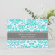 Invitation Dîner de répétition Aqua Gray Damask