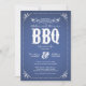 Dîner de mariage vintage chic moderne à la campagne design d'invitation barbecue avec une typographie rustique élégante en détresse et une jolie bordure pointillée avec des détails vintages de coin de défilement sur un arrière - plan de texture grunge vintage. Cliquez sur le bouton CUSTOMISER IT pour customiser les polices, déplacer du texte et créer votre propre conception unique d'invitation unique.