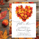 Cette invitation à dîner de répétition présente un beau coeur de feuilles d'automne, ce qui en fait un endroit idéal pour une fête sur le thème de l'automne. L'invitation est simple et élégante, avec un arrière - plan blanc et un texte noir. Le coeur de la feuille d'automne ajoute une touche de fantaisie et de plaisir, et le design général est parfait pour célébrer le prochain mariage du couple.
