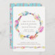Boho-chic bohème tribale plume et perles aquarelle couronne mariage des invitations à dîner de répétition. Jolies plumes pour spirité libre et perles pour l'amitié mariage union design invitation. Personnalisez avec vos propres détails mariages, la couleur arrière - plan au verso peut également être changée pour convenir à votre thème de couleur ou à votre propre couleur préférée, actuellement aqua turquoise. Photo originale de Sarah Trett pour www.mylittleedenweddings.com sur zazzle.