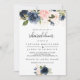 Cette exquise invitation à la répétition florale d'automne est parfaite pour une répétition mariage tropicale. Le design dépeint des fleurs fantaisistes de couleur rose dessinée à la main, bleu foncé et bleu marine, inspirant élégance, classe et beauté naturelle.