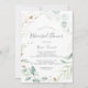 Cette invitation à dîner généreuse à la couronne de verdure et de feuille d'or est parfaite pour une répétition mariage moderne. L'élégant design botanique présente des eucalyptus aquarellés clairs et aquarellés, agrémentés de feuilles de parties scintillant en or blanc.