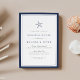Nos élégantes invitations à des dîners de répétitions d'été sont dotées d'un style nautique classique, d'un look épuré et minimaliste et d'une touche légère de vie marine. Design comporte une double bordure de bleu marine intemporel avec une petite illustration d'étoiles de mer en haut. Un bloc élégant et des lettres de script en gris clair et bleu marine assorti complètent le look. Parfait pour les dîners de répétition d'été ou nautiques.