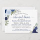 Cette belle invitation à dîner de répétition présente un design floral aquarelle avec des roses dans les tons bleu poussiéreux, marine et indigo sur un arrière - plan blanc classique. le dos est une couleur bleu marbré profond. Il contient des informations sur la répétition mariage et le dîner de fête qui suit. Parfait pour tenir la fête de la mariée au courant de toutes les festivités pré-mariages.