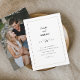 Dîner de répétition de mariage moderne et élégant Invitation avec design noir et blanc classique avec cadre doré sur le devant. Le dos a une photo pleine saignée.