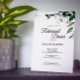 Cette invitation à la répétition de mariages botaniques neutres offre un palais plante simple et rustique pour coordonner avec n'importe quel thème traditionnel de la répétition de mariages. La verdure minimale, aux tons gris et foncés d'élégants feuilles d'eucalyptus verts et de feuillage plante, à côté de la calligraphie décontractée classe, ouvre une ambiance de nature minimaliste à une célébration classique et formelle du mariage.