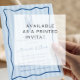 Notre invitation à la répétition estivale de homard est parfaite pour votre célébration balnéaire ! Le design côtier en gros est orné de lettrage bleu méditerranéen et d'illustrations sur un arrière - plan rayé bleu pâle de cabane. Un gribouillage de homard dessiné à la main surplombe les détails de votre événement, encadré par une bordure ondulée de pétoncle. Inclut un espace pour la répétition de la cérémonie de mariage et la célébration ultérieure.