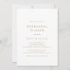 Cette invitation à la répétition de typographie or chic est parfaite pour une répétition mariage moderne. Le design simple présente une typographie classique minimaliste d'or et de blanc, dans un style boho rustique. Personnalisable dans n'importe quelle couleur. Gardez le design minimal et élégant, en l'état, ou personnalisez-le en ajoutant vos propres graphiques et artwork.