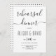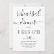Scénario cursive ctypographie mariage répétition invitation à dîner. L'arrière comprend un motif géométrique noir et blanc.