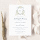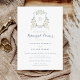 Dîner de répétition floral élégant Dusty Blue Crest Mariage. Floral Blanc Vert Mariage Crest Invitation. Carte d'invitation pour le dîner de répétition du Mariage de Monogram Crest