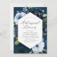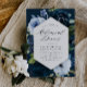 aquarelle design floral avec fleurs bleu clair et bleu marine. Le texte noir peut être personnalisé.