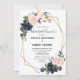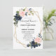 Dîner de répétition géométrique bleu marine foncé Invitation avec élégant bouquet de bleu marine, bleu royal, blanc, rose blush et vert sauge eucalyptus feuilles et élégant cadre géométrique neutre parties scintillant. Veuillez me contacter pour toute aide sur la personnalisation ou si vous avez besoin d'un autre produit avec ce design