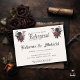 Répétition du diner de mariage | Dîner de répétition mariage gothique exceptionnel invitation - avec bouquets floraux de roses noirs et fleurs de palissandre, feuillage d'ailes de chauve-souris - Accentué par la calligraphie gothique anglaise ancienne Créé par ©WhimsicalArtworkMC Ceci fait partie d'une suite de papeterie Mariage complète