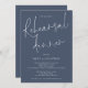 Dîner de répétition Mariage de script moderne Dusty Navy Bleu. Ce design typographique a un élégant script informel pour le dîner de répétition et le reste du texte que vous pouvez facilement personnaliser. Vous pouvez également modifier les couleurs du texte et de l'arrière - plan de chaque côté si vous le souhaitez via l'option Customiser plus.