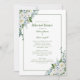 Élégante répétition de mariage dîners botanique avec un bel arrangement floral qui comprend des roses blanches complétées de fleurs dans les tons bleu, perwinkle et une touche de jaune sur la douce végétation luxuriante. Personnalisez le design d'événement mariage avec vos détails en lettrage rustique et vert tendance et script sur un arrière - plan transparent qui permet votre choix de papier à apprécier pleinement à l'avant et à l'arrière. Pour des résultats optimaux, remplacez les détails modèles par vos propres détails en laissant de l'espace entre les paragraphes comme dans l'exemple et en majuscules lorsque spécifié ou si le mot est un nom propre et normalement capitalisé. Envoyez un courriel à invitationsuites@gmail.com avec des questions ou des demandes personnalisées.