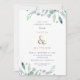 Des invitations à dîner sur mesure et personnalisées et abordables pour les répétitions de mariage personnalisées avec les détails de votre événement. Cet élégant design présente un faux ampersand en feuille d'or avec un délicat feuillage d'aquarelle bleu et vert sur un arrière - plan blanc. Utilisez les outils de conception pour customiser le texte, modifier les polices et les couleurs ou ajouter vos propres photos pour créer une invitation de soirée minimaliste moderne.