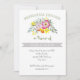 Fleurs roses folklore moderne mariage à fleurs florales invitation dîner avec joli style vintage fleurs en rose et jaune avec feuilles verts, une bannière grise et texte courbé avec une police fantaisie qui ressemble à l'écriture manuscrite. Ce design modèle frais et tendance fait partie d'un ensemble mariage et est entièrement personnalisable. Parfait pour un mariage rustique de printemps ou d'été.