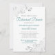 Cette belle invitation à dîner de répétition mariage présente un design simple mais élégant de texte turquoise ou turquoise et gris sur un arrière - plan blanc avec des boucles de faux feuille argent ou de la filigree dans les coins. Bienvenue membres de votre mariage et invités spéciaux à partager dans un dîner de répétition avec ces invitations magnifiques. Cet invitation est entièrement personnalisable, vous pouvez donc modifier le texte en fonction de votre situation et de vos besoins. Conçu pour coordonner avec notre suite de mariage Turquoise et gris élégant