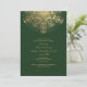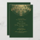 Flacon de neige doré sur le dîner de répétition de mariage d'hiver vert qui comporte un flocon de neige doré sur l'arrière - plan vert. Ce design personnalisé est un modèle entièrement personnalisable et fait partie d'un ensemble mariage parfait pour un mariage d'hiver de décembre ou de Noël.