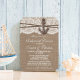 Ces invitations à la répétition de mariage de plage d'ancre nautique rustique feront le faire-part parfait pour tout mariage au bord de la mer! Le design comprend un bel arrière - plan rustique effet burlap avec une coupe d'effet de dentelle blanche vintage romantique finie avec une étonnante ancre nautique et ficelle. Ces invitations peuvent être personnalisées pour votre occasion spéciale et feraient la faire-part parfaite pour n'importe quel mariage de plage, douche nuptiale, fête de fiançailles, fête d'anniversaire et bien plus encore. Veuillez noter que Zazzle ne vend que des invitations imprimées, de sorte que ces invitations n'ont pas de matériel réel de burlap, dentelle, ancre ou ficelle.