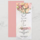 Des invitations à dîner répétitives vous attendent sur un arrière - plan de bouquet de fleurs rose, jaune et orange et d'un élégant cadre de table.