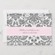 Invitations personnalisées pour le dîner de soirée dans un motif vintage moderne et élégant de couleur rose clair, gris fusain et blanc chic et classique à motifs floraux damas. Personnalisez le texte pour créer une invitation unique pour votre dîner de répétition mariage. Contactez-nous pour demander un changement de couleur. Disponible dans de nombreux produits mariages correspondants.