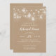 Des invitations à dîner sur mesure et sur mesure pour les répétitions de mariage avec un modèle facile à utiliser pour la personnalisation. Ce design rustique chic présente des brins de lumières à cordes brillantes et des jarres de maçon sur un arrière - plan en papier imitation kraft. Personnalisez l'invitation avec les détails de votre dîner de répétition ou customisez le texte à utiliser pour n'importe quel événement. Utilisez les outils de conception pour ajouter des photos et customiser les polices de texte et les couleurs pour créer un design unique pour votre fête de répétition mariage.