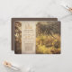 Dîner de répétition rustique invitation avec beau paysage forestier et dîner de répétition texte d'invitation écrit sur l'ancienne planche de bois. Invitation romantique pour votre dîner de répétition à la campagne dans les bois avec des épicéas et d'autres arbres sauvages décorés de lumières à cordes.