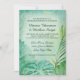 Invitation à la soirée de répétition de mariée et de salle de spectacle et produits d'accueil à assortir. Il s'agit d'un motif design moderne et contemporain de plus en plus populaire et tendance. Dans une palette de couleurs bleu et vert actuellement tendance, avec un mélange d'éléments et d'arrière - plans peints à la main et un motif moderne, sophistiqué et contemporain de style graphique audacieux feuille de style, c'est un ensemble de faire-part de mariage qui saura plaire à votre mariée et mariée. Idéal pour les mariages à la plage, les mariages du golfe côtier, les mariages de l'île ou les mariages de destination n'importe où dans les tropiques. En bleu aqua, vert citron vert, vert forêt et menthe molle. Copyright Audrey Jeanne Roberts, tous droits réservés.