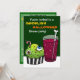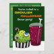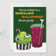 Invitation pour le dîner d'Halloween avec un gâteau vert brut avec des globes oculaires et un ver qui pointe à côté d'une boisson gazeuse aux couleurs inhabituelles avec un agitateur d'os. Invitation vos amis autour pour une fête dégoûtante et voir qui a l'estomac le plus fort! Customisez tout le texte à vos besoins ! Illustrations de Jojo Kneebone - Aka MuffinPuffART!