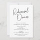 Invitation Simple Dîner De Répétition. Cette invitation à la répétition minimaliste et moderne à écriture manuscrite est parfaite pour les couples qui veulent faire une déclaration de style contemporain. L'élégante calligraphie associée à la palette de couleurs noir et blanc créera une invitation intemporelle que vos invités n'oublieront pas. Faites une déclaration audacieuse avec ce design unique et élégant!