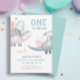 Dinosaur One-A-Saurus 1st Birthday Party Invitation présente un design de dinosaure à l'aquarelle dans des couleurs pastel douces avec le dicton "One-A-Sauraus" ci-dessus. Personnalisez-le avec votre nom Enfants et les détails de l'invitation de fête. Une adorable invitation pour le premier anniversaire d'un bébé !