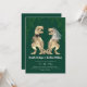 Funny Dinosaur Jurassic Wedding Invitation Dark Green & White | Watercolor T-Rex Bride and Groom | Modern Jungle Theme with QR Code RSVP