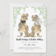 Dégustez vos invités avec ce faire-part de mariage à thème de dinosaures amusant avec le code qr du site web. mariée de dinosaure amusante et marié avec l'aquarelle botanique verdure. Facile à customiser avec le site web RSVP en ligne QR code, les noms des mariées et mariées, la date du mariage et tous les détails du lieu mariage dans le script de typographie moderne. Fun T-Rex marié et illustrations de marié en teintes brunes avec aquarelle eucalyptus feuillage dans les teintes vertes. Dino original unique oeuvre de l'artiste Catherine Sweetman