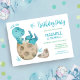 Invitation vos invités à passer un moment "dino-mite" à la fête d'anniversaire de votre petit garçon avec cette invitation de dinosaure Wild One qui présente un Tyrannosaurus Rex (T rex) mignon avec des empreintes de dino bleu bébé. Reverse side est motif de pistes de dino blanc sur un arrière - plan bleu pastel. Parfait pour les thèmes jurassiques et préhistoriques. Image originale KL Stock