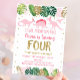 Invitation Dinosaure fille rose Quatrième anniversaire