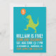 Invitation festive et amusante pour anniversaires de enfants fêtes parfaites pour les fêtes d'anniversaire de garçons. Il est doté d'un motif rayé bleu et blanc sur le dos et d'un dinosaure vert avec ballon de fête. Personnalisez en ajoutant vos propres détails.