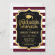 Invitation à la fête de fin d'études pour hommes ou femmes. Elégante carte invitation en marron bordeaux, noir et or. Design simple et moderne avec des rayures, un casquette, faux parties scintillant or et typographie script. Idéal pour une célébration élégante de remise des diplômes.